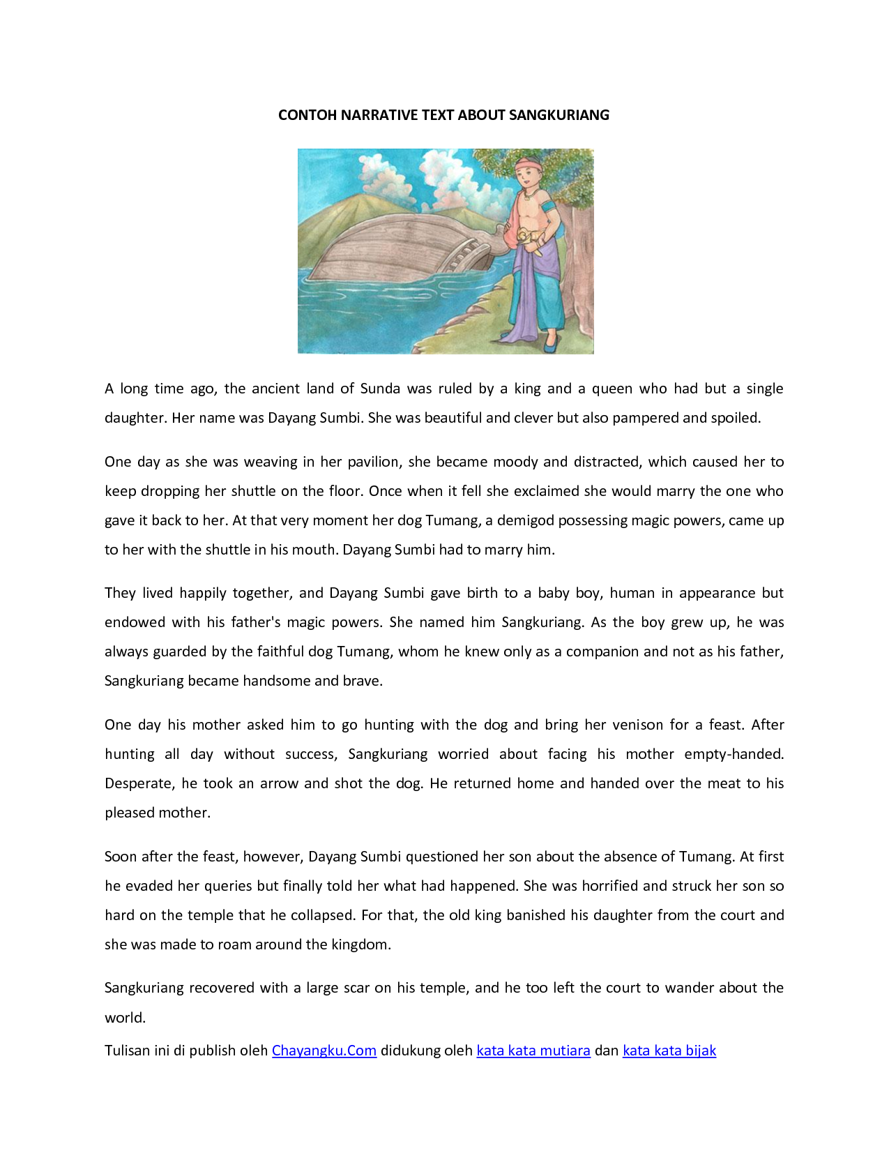 Contoh Narrative Teks Bahasa Inggris Sangkuriang Diigo Groups