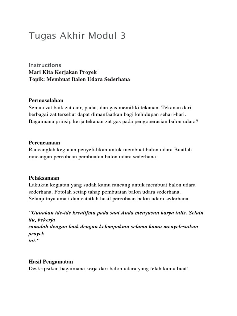 Tugas Akhir Modul 3 Laporan Membuat Balon Udara Sederhana Pdf