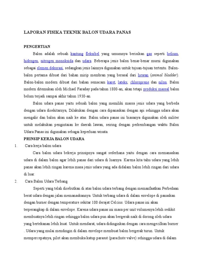Report Tugas Akhir Modul 3 Laporan Membuat Balon Udara Sederhanapdf Please fill this form we will try to respond as soon as possible. Balon adalah sebuah kantung fleksibel yang umumnya berisikan gas seperti helium hidrogen nitrogen monoksida dan udaraBeberapa jenis balon benar-benar murni digunakan sebagai elemen dekorasi sedangkan jenis lainnya digunakan untuk tujuan-tujuan tertentuBalon-balon pertama dibuat dari bahan mirip membran yang berasal dari hewan animal bladderBalon-balon modern dibuat dari bahan semacam. Report Cara Pembuatan Balon Udara Sederhana Please fill this form we will try to respond as soon as possible.