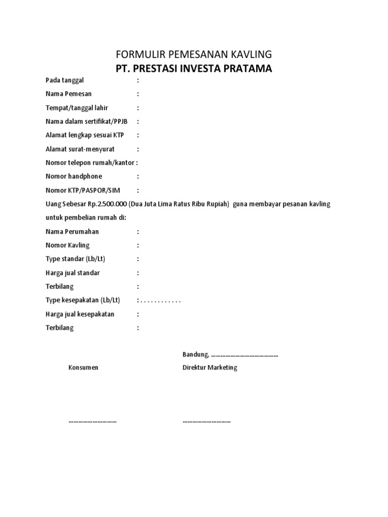 Doc Formulir Pemesanan Kaveling Alie Soeprie Academia Edu