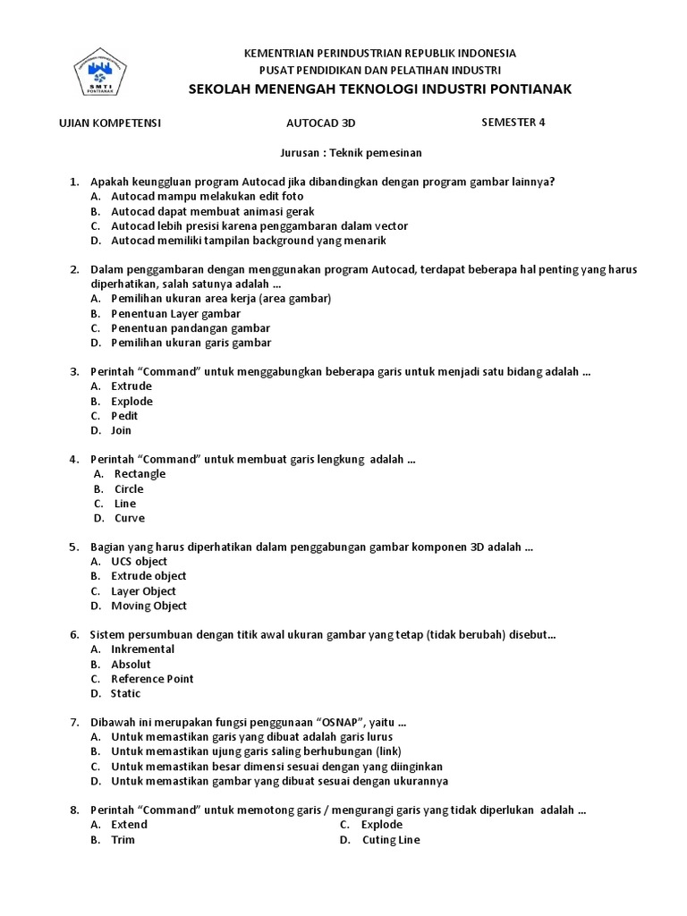 Contoh Soal Autocad 3d Pilihan Ganda Beserta Jawabannya Ilmusosial Id
