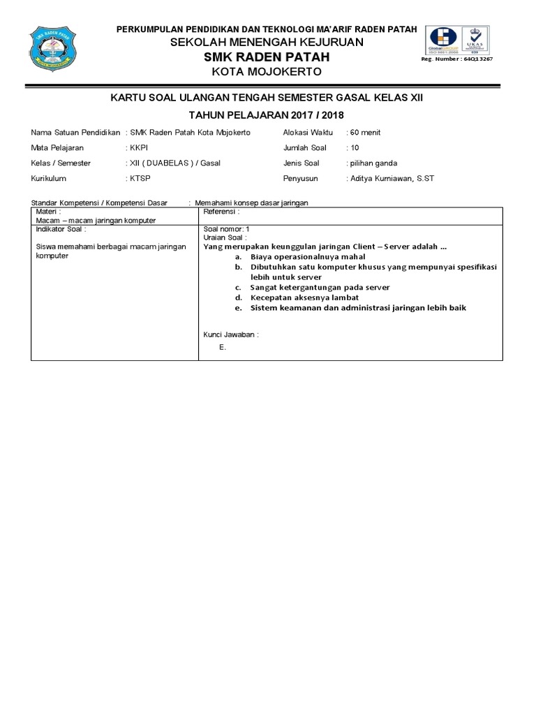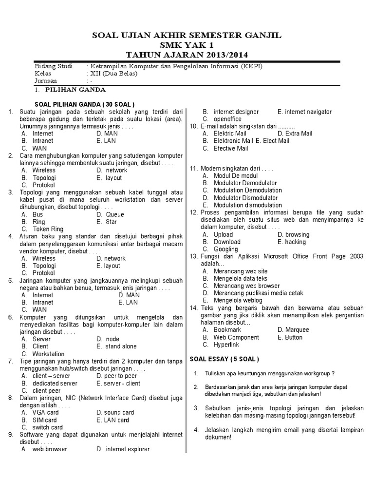Soal Uas Kkpi Smk Kelas Xii Tkj